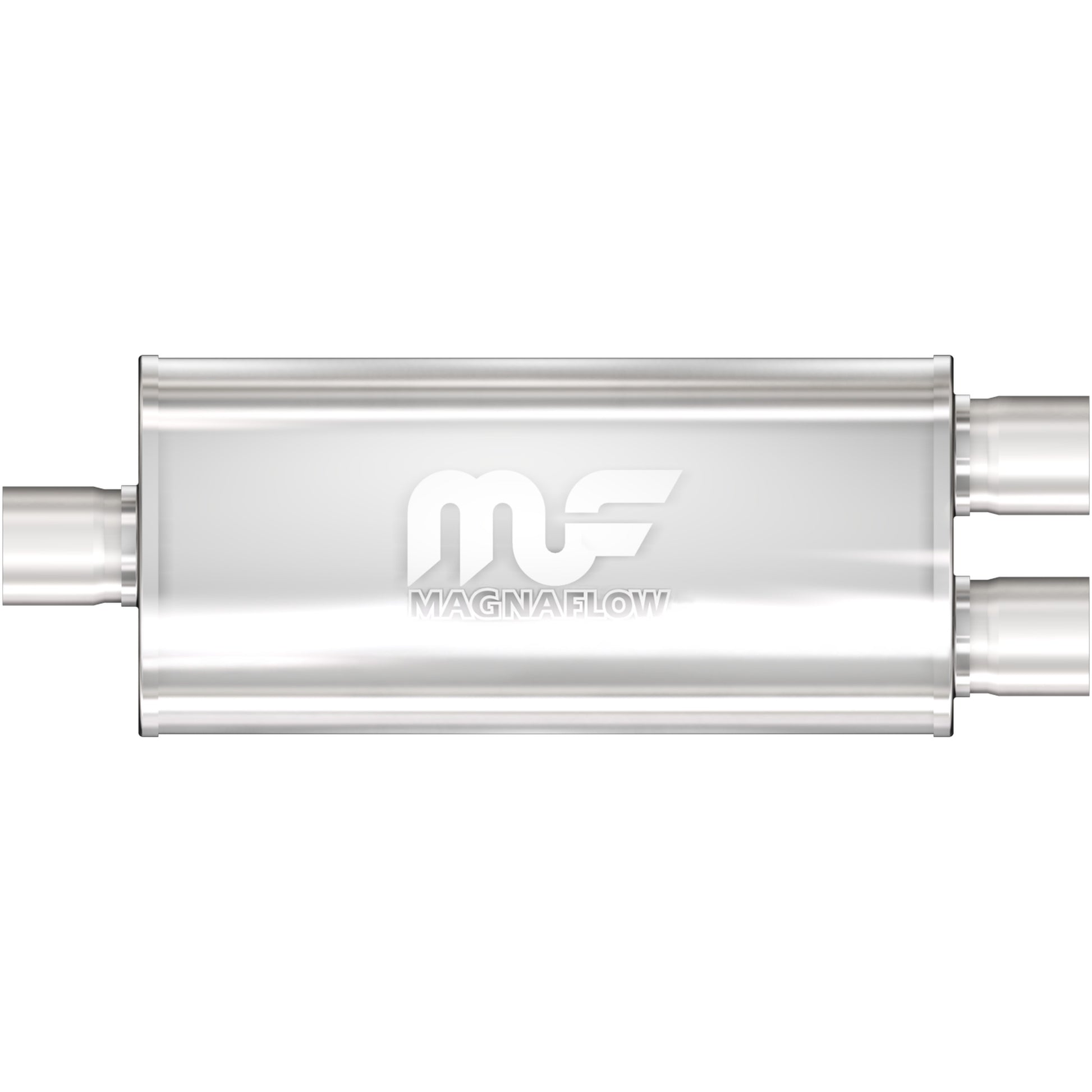 The MagnaFlow 5 X 8in. Oval Straight-Through Performance Exhaust Muffler 12388 is engineered to enhance your ride with a healthy helping of our signature exhaust sound and dyno-proven performance thanks to its free-flowing straight-through perforated stainless steel core wrapped in stainless steel mesh and acoustic fiber fill. The reversible universal 3/2.5in. diameter inlet/outlet Straight-Through layout allows you to install it in whatever orientation and configuration you see fit. However professional installation is highly recommended. Muffler 12388s weight-optimized 5x8x24in. oval-shaped body features a satin finish that elevates the overall aesthetics of your current exhaust setup. 12388 is made of durable corrosion resistant stainless steel and produced using cutting-edge CNC precision robotic manufacturing techniques all backed by MagnaFlow's limited lifetime construction warranty.