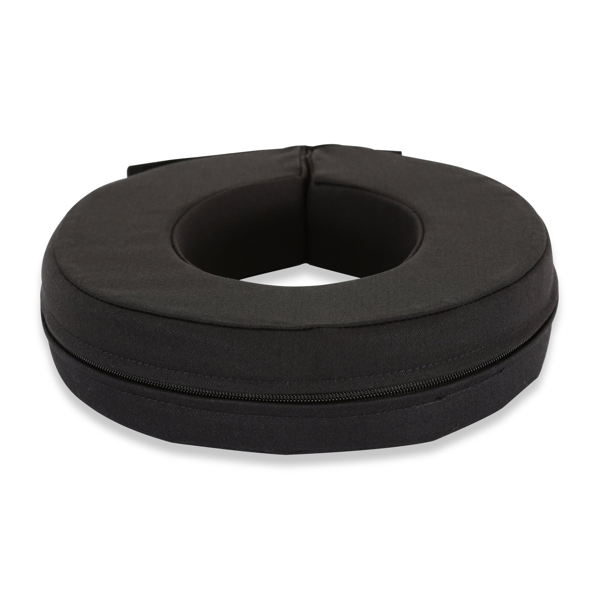 The RaceQuip 360 Degree Helmet Support Neck Collar is made of high-density flame retardant foam which is covered with a woven FRC fabric. Used in auto racing to hold the helmet up off the driver's shoulders and provide a cushion between the helmet and shoulder blades or chest. Built just like our other fire retardant helmet support neck collars, except with no SFI tag. The round tapered wedge design measures 1 3/4" tall in the front and 2 1/4" tall in the rear. The Velcro® closure allows a maximum neck size of about 20" so the RaceQuip Helmet Support Collars are comfortable and easy to use. Available in one adult size in black, red, and blue.
